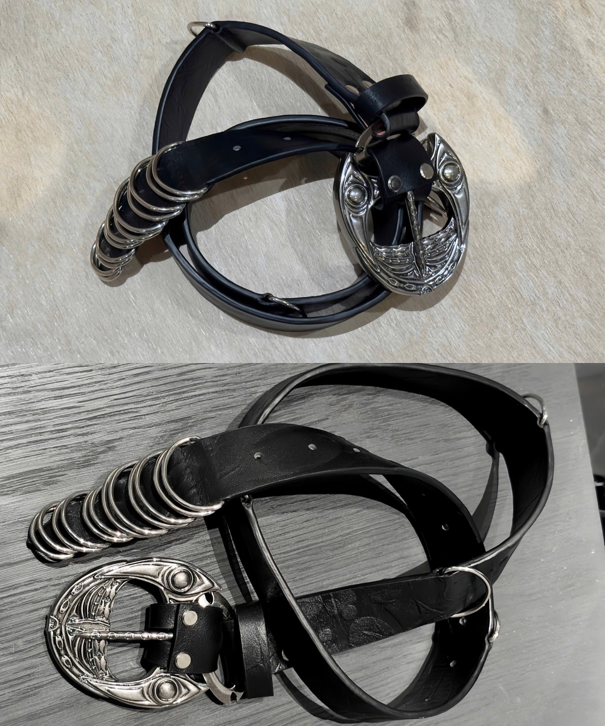 MATERIAL : REAL COW LEATHER WITH EMBOSSED COZY LOGO PATTERN ON THE BELT